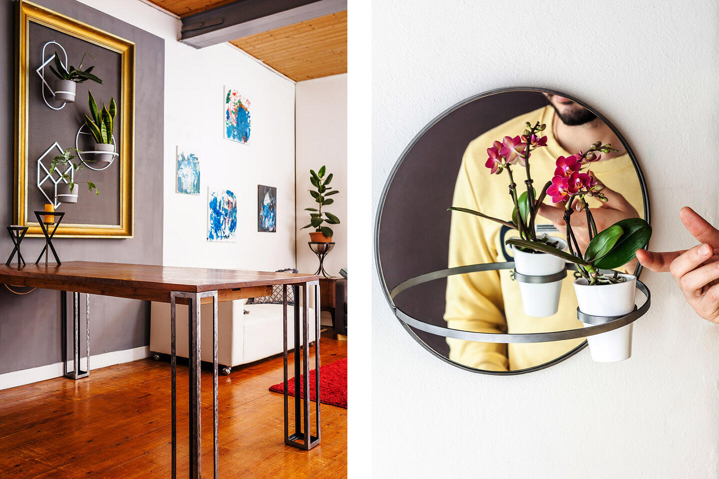 We work mainly with steel and wood. Leather, fabrics and living plants are our preferred choice of decoration.