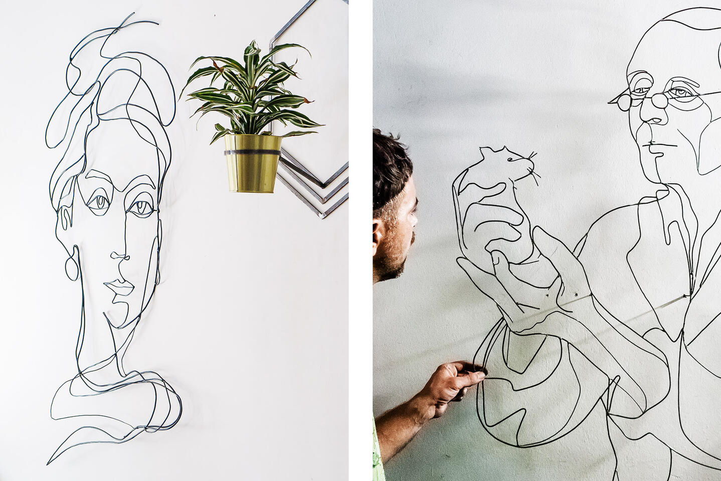 To create these portraits, our graphic designer first turns your photo into a one-line drawing. From this we make a 3D version from steel wire. This is our own unique design that creates a portrait that is alive and full of light. It can be scaled up or down to fit on any wall.